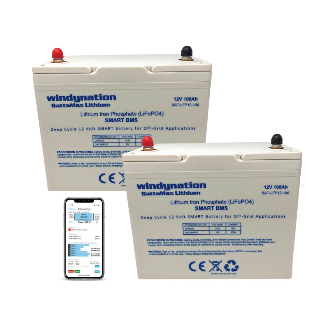 Lithium 100ah LIFePO4 Battery - 12 Volt BattaMax with 4000 Cycles, BMS, and Remote Connectivity for RV, Cabin, Marine, and Backup Storage Applications